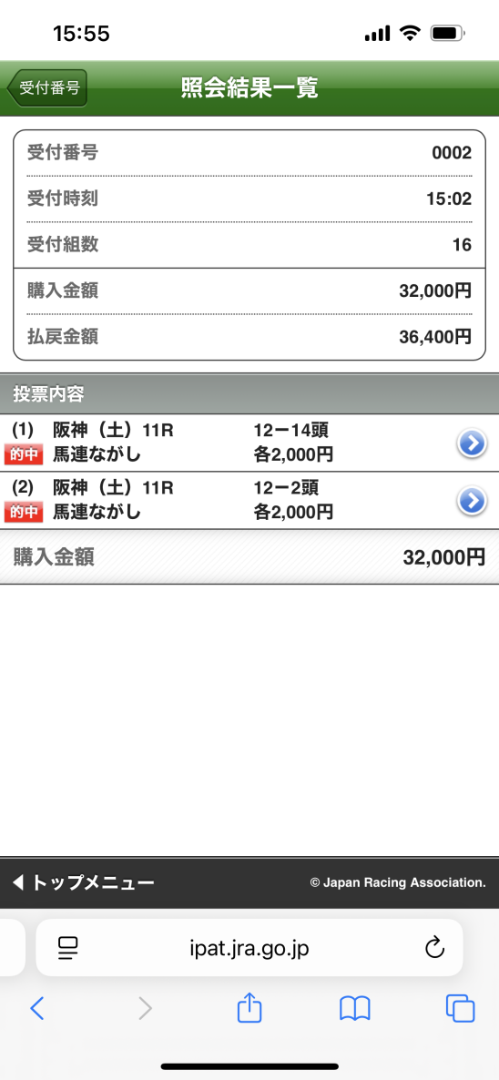 馬券の閲覧方法