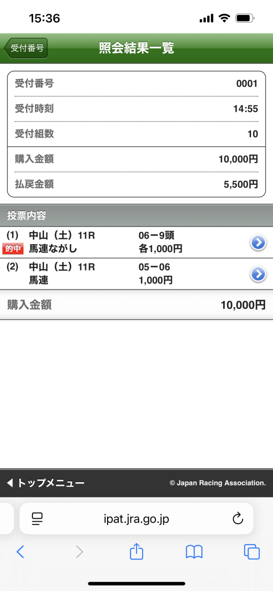 僕が買ったレースの馬券を