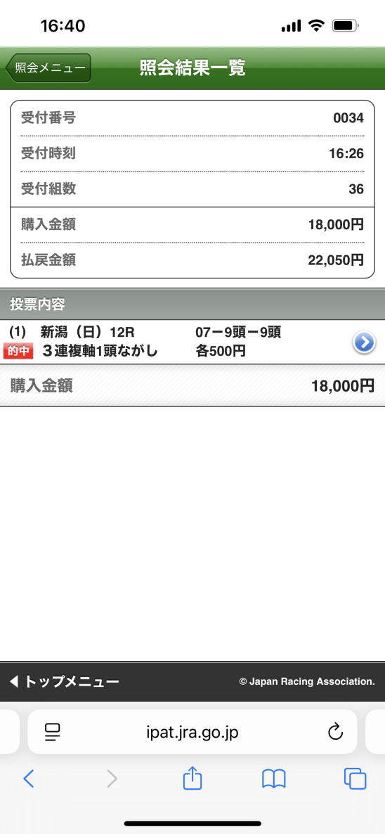 注目の的中馬券