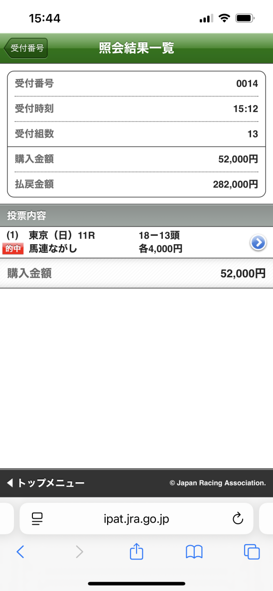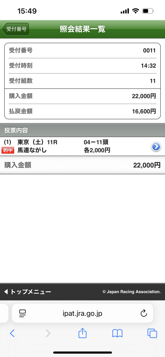 東京11R アルゼンチン共和国杯 馬連流し13通り
