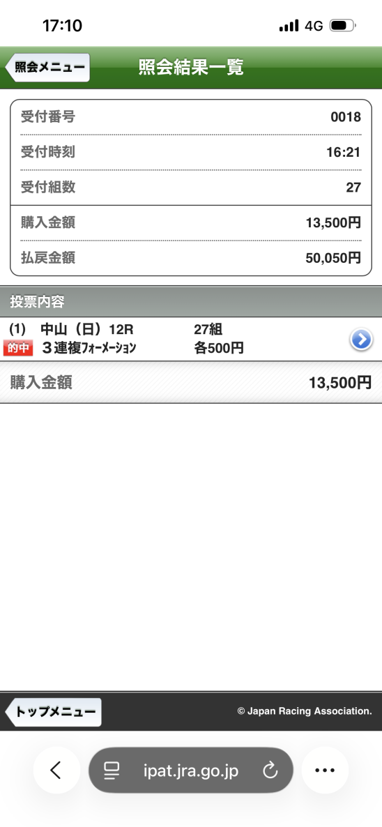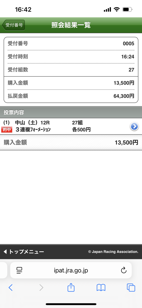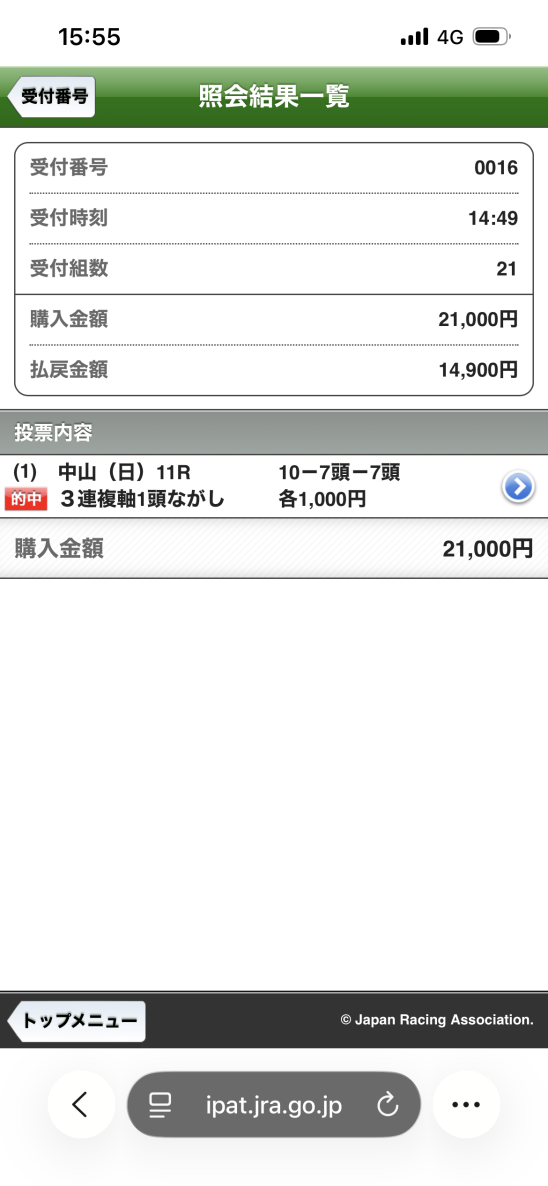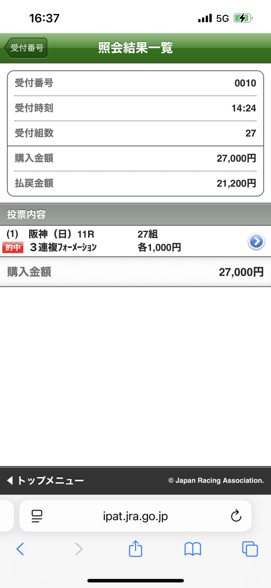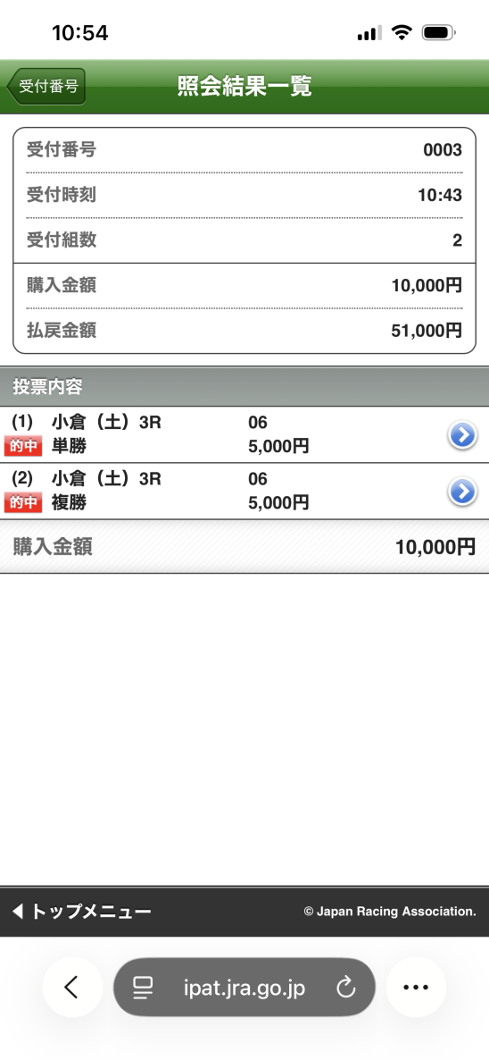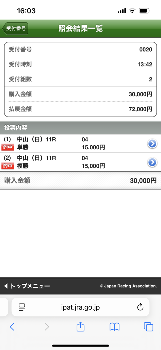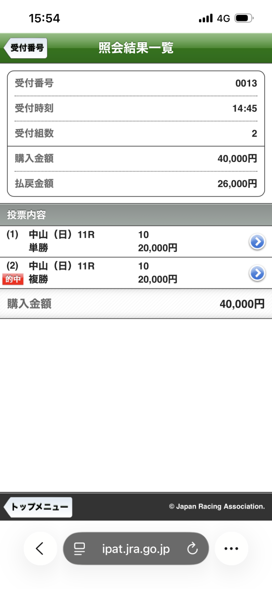 馬券の閲覧方法
